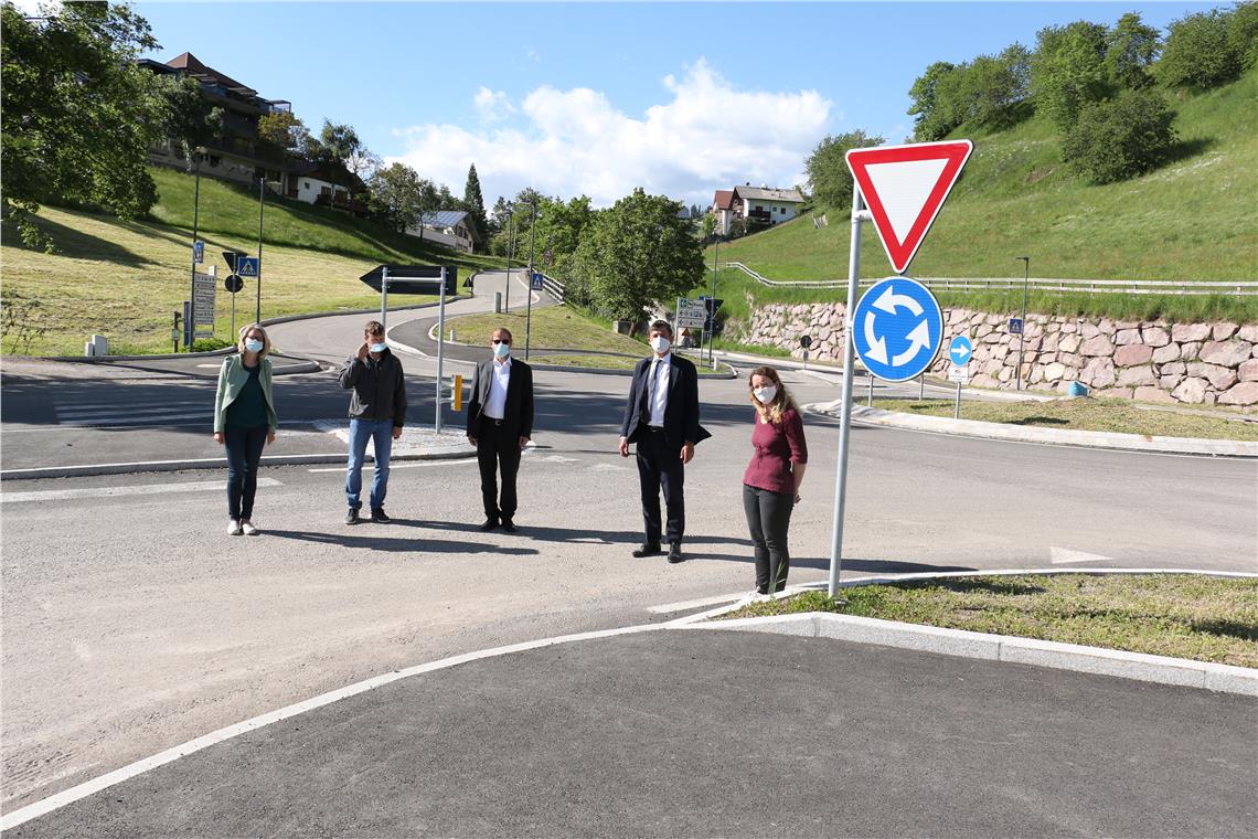 Bereits abgeschlossen ist hingegen die Neugestaltung der Dorfeinfahrt von Hafling auf dem Tschögglberg. Mobilitätslandesrat Daniel Alfreider und Bürgermeister Andreas Peer unterstrichen bei der offiziellen Freigabe der Einfahrt für den Verkehr vor kurzem die gut funktionierende Zusammenarbeit zwischen Land und Gemeinde bei der Umsetzung des Projektes. Laut Alfreider zeigt dieses Projekt, "wie wichtig Investitionen in den ländlichen Raum sind. Eine moderne und sichere Straßeninfrastruktur erhöht die Lebensqualität der Bürger vor Ort." Die Abteilung Straßendienst des Landes hat nicht nur einen neuen Kreisverkehr und einen zusätzlichen Wendeplatz für Busse samt Autoparkplatz realisiert, sondern auch neue Stützmauern. "Somit hat sie die neue Dorfeinfahrt zu einem kleinen Mobilitätszentrum für Wanderer, Pendler und Einheimische entwickelt", erklärt Alfreider.