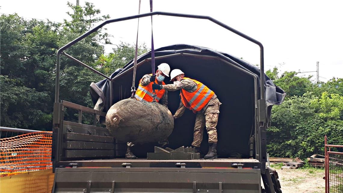Die Operation ist geglückt: Sprengstoffexperten der Sturmpioniere Trient haben soeben (31. Mai, 10.18 Uhr) eine US-Fliegerbombe aus dem Zweiten Weltkrieg südlich von Pfatten entschärft.
