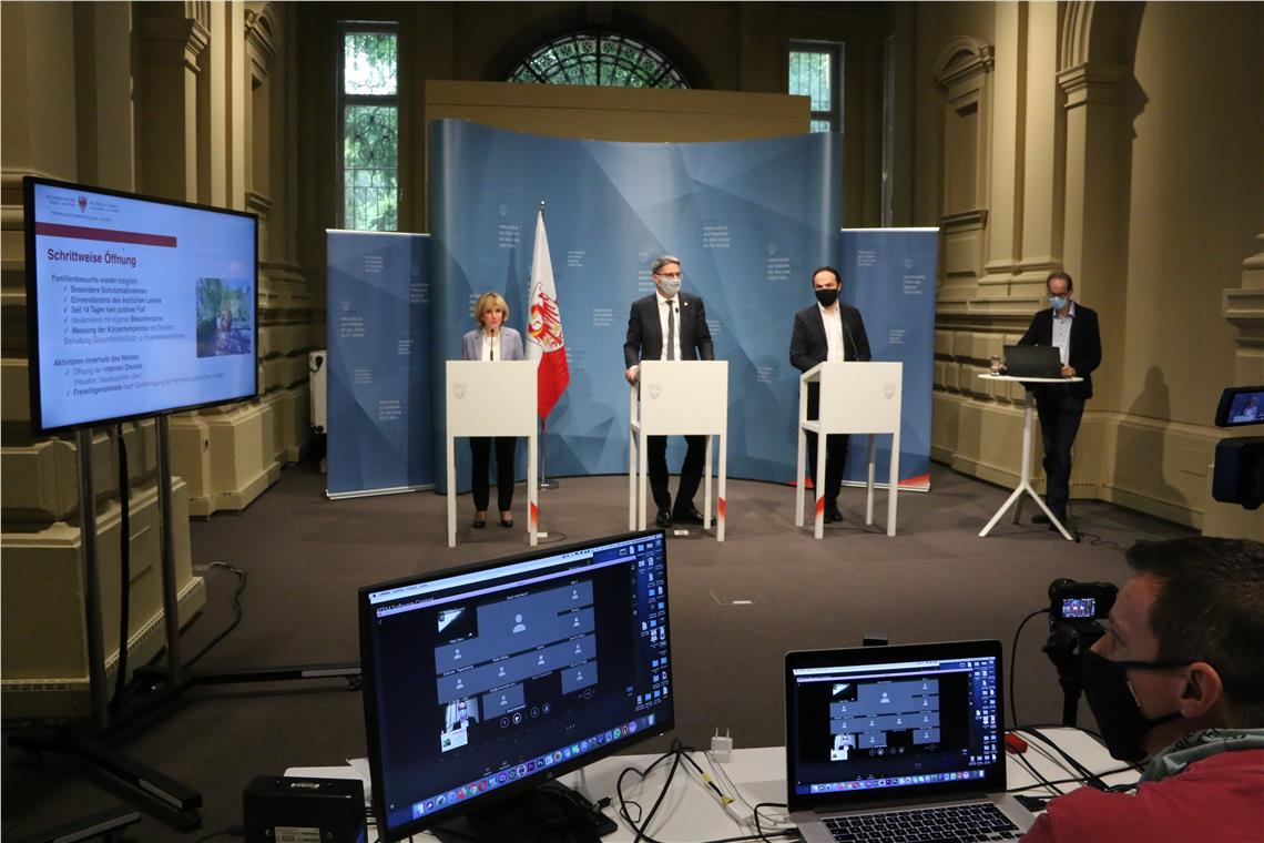 Die drei Hauptthemen mit Landeshauptmann Arno Kompatscher, Landesrätin Waltraud Deeg und Landesrat Philipp Achammer waren: Erstens eine Reihe von Lockerungen bei den Vorschriften rund um die Vorbeugemaßnahmen gegen das neuartige Coronavirus, zweitens die schrittweise Öffnung der Seniorenwohnheime und Wohndieste für Menschen mit Behinderung, drittens die Pläne der Landesregierung zur Öffnung der Bildungseinrichtungen im Schuljahr 2020/2021.