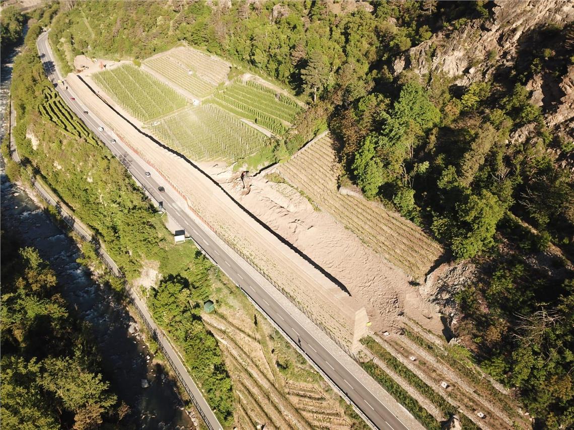 Nachdem es im November 2019 besonders große Niederschläge gab, hatten waren von den Hängen oberhalb der Straße Steine teils bis zur Staatsstraße gestürzt. Ein größerer Felssturz ereignete sich oberhalb des Campingplatzes Vermoi in Latsch. Nach dem Steinschlag mussten die Staatsstraße gesperrt und 17 Personen evakuiert wurden. Die Landesabteilung Tiefbau und das Amt für Geologie und Baustoffprüfung des Landes hatten auf dem Dringlichkeitswege die Herstellung von Dämmen zur Absicherung der beiden am meisten gefährdeten Bereiche in Auftrag gegeben. Die Landesregierung stellte umgehend Gelder bereit. So konnten die Arbeiten bereits Anfang Dezember in Angriff genommen. Sie sind nun bis auf wenige Rest- und Nebenarbeiten weitgehend abgeschlossen.