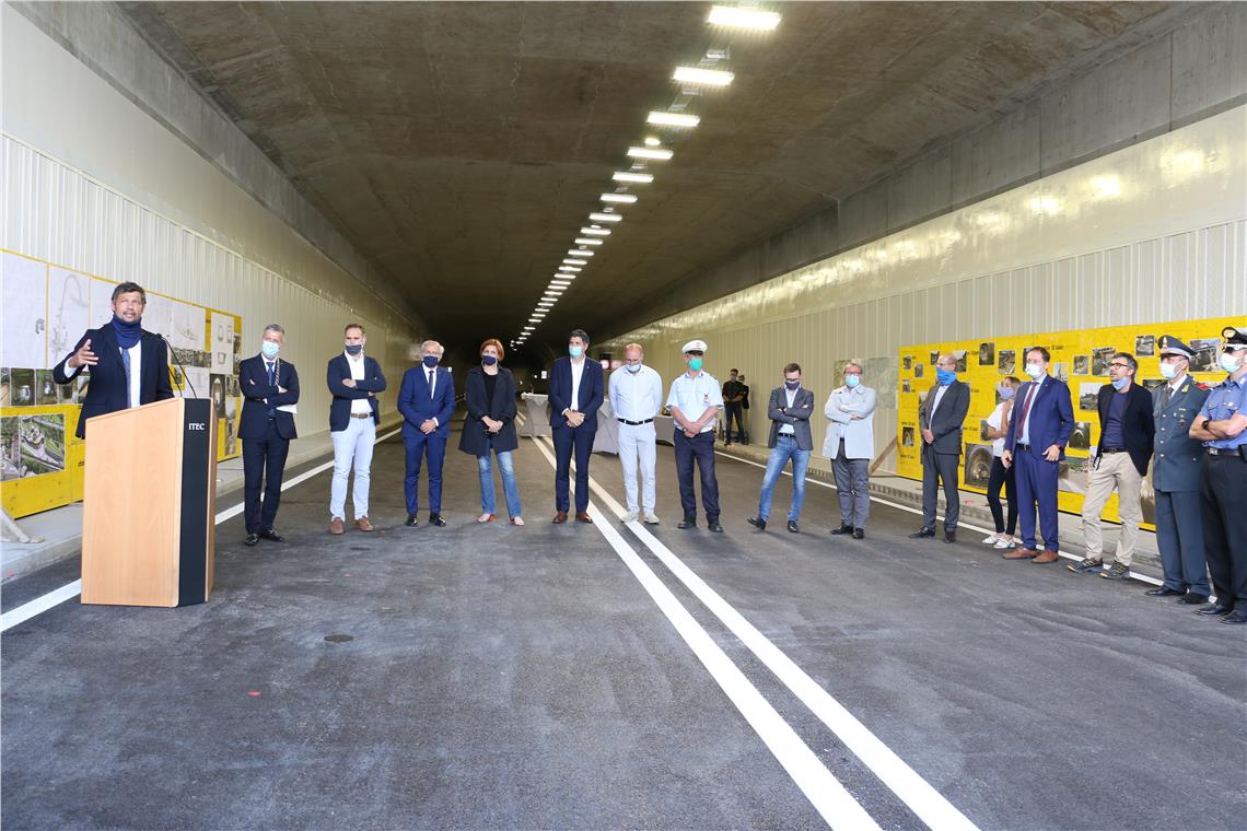 Der rund einen halben Kilometer lange Mittelanschluss der Brixner Umfahrung kann nun befahren werden. Mobilitätslandesrat Daniel Alfreider, Landesrat Massimo Bessone, Bürgermeister Peter Brunner, Stadtrat Thomas Schraffl, Tiefbauabteilungsdirektor Valentino Pagani und Emilio Bianchi als Vertreter der Baufirmen haben den neuen Verkehrsweg , mit dem symbolischen Banddurchschneiden für den Verkehr geöffnet. Zuvor hatte Dekan Albert Pixner den Straßenschnitt gesegnet, der die Umfahrung direkt mit dem Stadtzentrum verbindet. Vor Ort waren auch die Landtagsabgeordneten Magdalena Amhof und Helmut Tauber, Vertreter der Gemeinde von Brixen und Umgebung, der Baufirmen, die Techniker und Planer sowie die Ordnungskräfte.