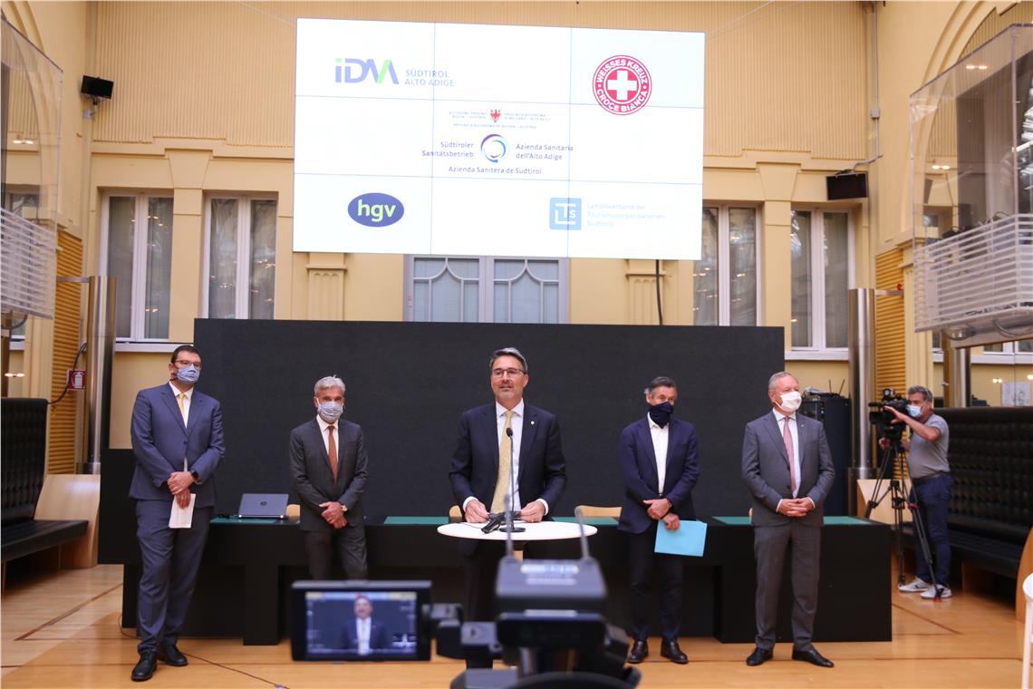 Die Testaktion wurde heute (22. Juni) von Landeshauptmann Arno Kompatscher, Tourismuslandesrat Arnold Schuler, Gesundheitslandesrat Thomas Widmann, dem Präsidenten des Wirtschaftsdienstleisters IDM, Hansi Pichler, und dem Präsident der Südtiroler Hoteliers- und Gastwirteverband HGV, Manfred Pinzger, vorgestellt.