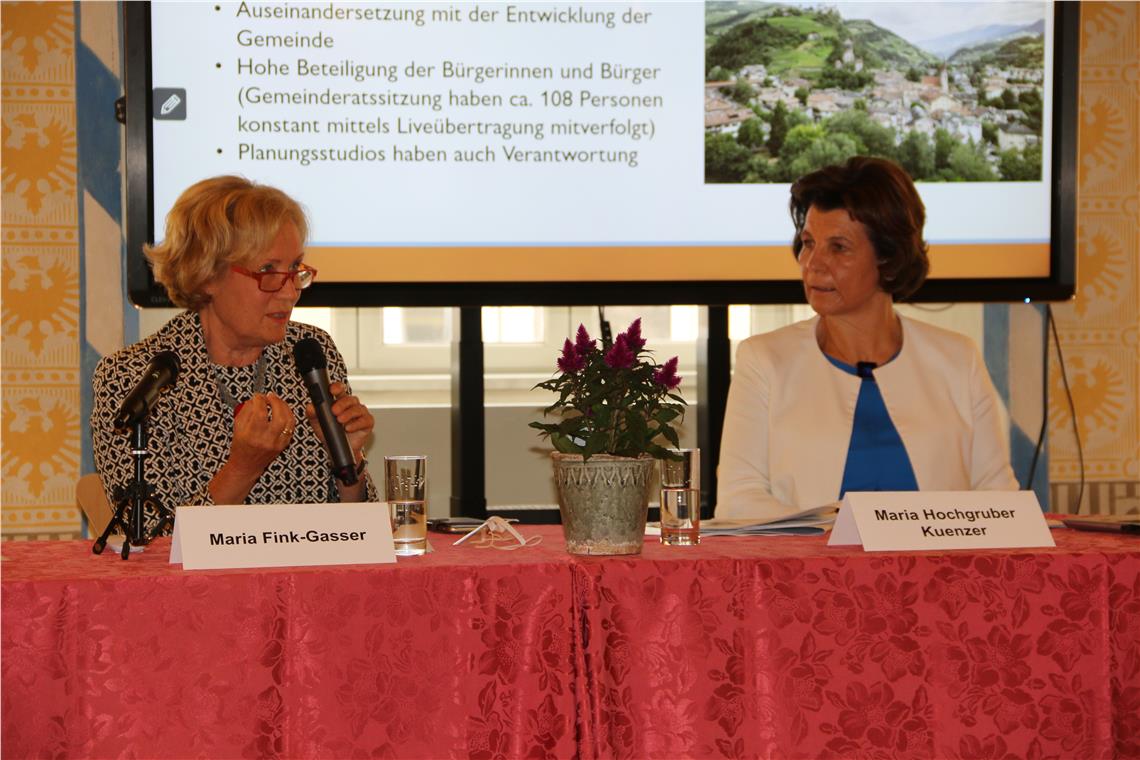 Wie das am Beispiel der Pilotgemeinden, die mit der Anwendung des Gesetzes bereits gestartet sind, funktioniert, erklärte heute Maria Gasser Fink, Bürgermeisterin von Klausen. Dort beteiligten sich die Bürger aller vier Fraktionen - Latzfons, Verdings, Gufidaun und Klausen – an einer Planungswerkstatt, konnten selbst Beiträge geben und sich die Inputs von Experten anhören.