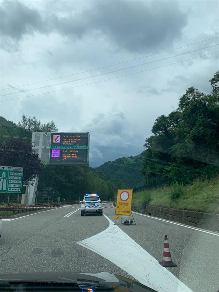 Den ganzen Tag über liefen auf der der Brennerstaatsstraße (SS 12) bei Blumau Aufräumarbeiten nach einem Murenabgang. Nun ist die Straße wieder für den Verkehr geöffnet.