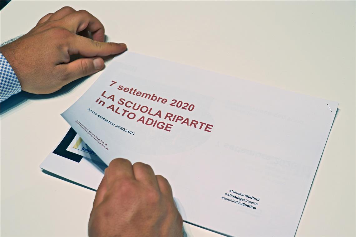 Sechs Monate standen die Klassenräume leer, nun sollen diese wieder ab dem 7. September mit Leben gefüllt werden. Heute (25. August) haben der italienische Bildungslandesrat gemeinsam mit Schulamtsleiter Vincenzo Gullotta die Richtlinien für die italienischsprachigen Schulen und Kindergärten vorgestellt. Die Bildungswelt habe ihre Tätigkeit nie ganz eingestellt, hob der Landesrat hervor, sondern sich bestmöglich auf die neue Herausforderung des Fernunterrichts eingestellt. Für den Start ins neue Bildungsjahr sei jedoch nun die Rückkehr zum Präsenzunterricht vorgesehen.