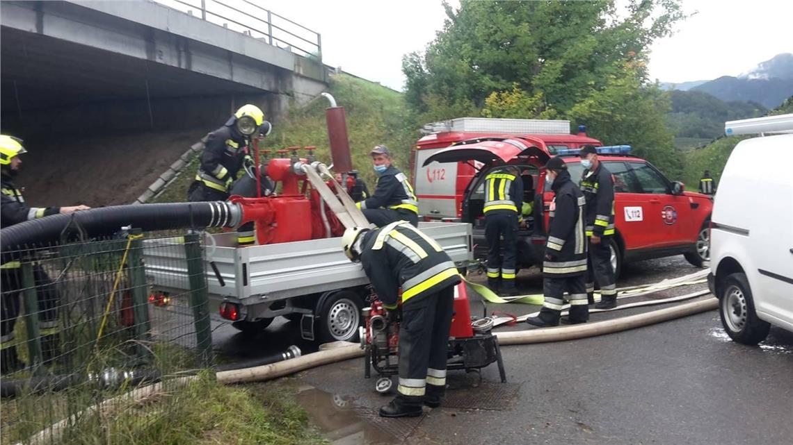An den beiden Hochwasser-Wochenenden Ende August und am 3. Oktober musste die Berufsfeuerwehr zu jeweils rund 60 verschiedenen Einsätzen ausrücken: Zusammen mit den drei Freiwilligen Feuerwehren der Stadt Bozen - Gries, Oberau und Bozen Stadt - räumte die Berufsfeuerwehr Straßen und Plätze in Bozen frei, die durch umgefallene Bäume oder abgebrochene Äste aufgrund von Windböen blockiert wurden. Zudem haben die starken anhaltenden Niederschläge mehrere Keller, Tiefgaragen und Unterführungen überschwemmt: Auch hier waren Feuerwehreinsätze notwendig geworden. Die Berufsfeuerwehr setzte auch schweres Räumgerät wie Erdbewegungsmaschinen ein, um überlaufende Gewässer etwa an der Brennerautobahn unter Kontrolle zu bringen.
