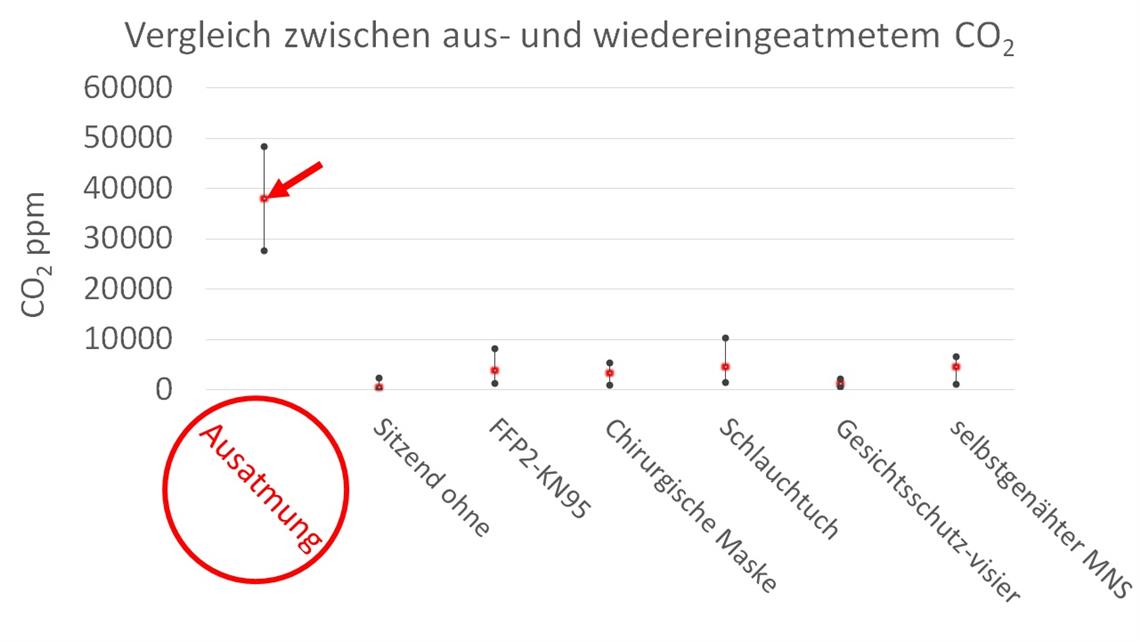 "Die Luft, die wir ausatmen, enthält mit rund 40.000 ppm eine hohe CO2-Konzentration", betont Luca Verdi, Direktor des Labors für Luftanalysen und Strahlenschutz. "Die Studie hat gezeigt, dass trotz Mund-Nasen-Bedeckung ein erheblicher Luftaustausch erfolgt, was zu einer bedeutenden Senkung des CO2-Gehalts in der Atemluft führt. Konkret werden mindestens drei Prozent (beim Visier) bis maximal 14 Prozent (bei der handgemachten Maske) der Luft, die wir ausatmen, wieder eingeatmet."