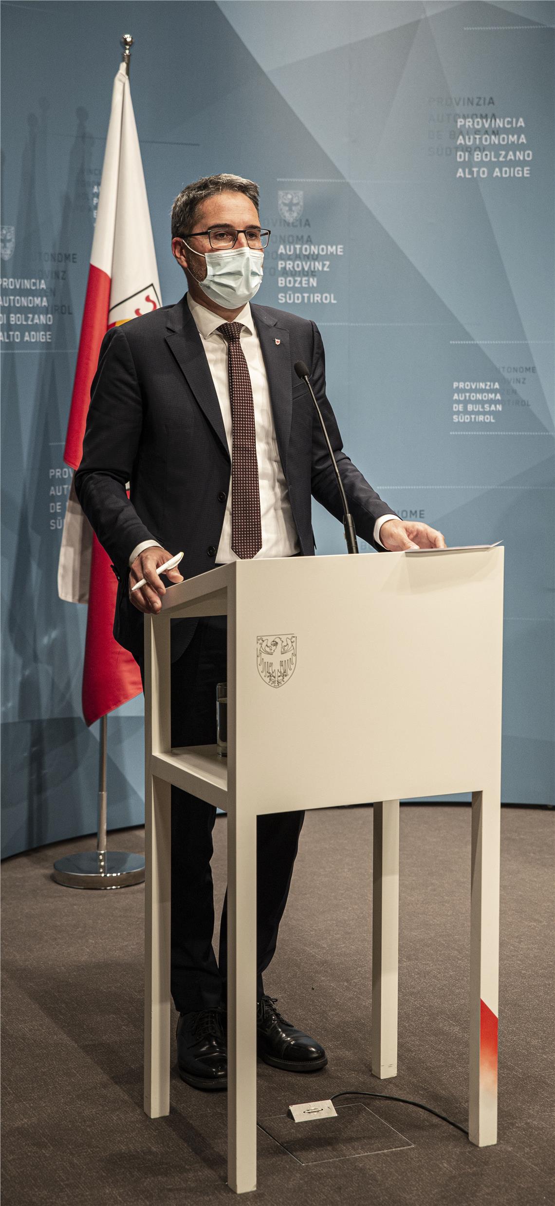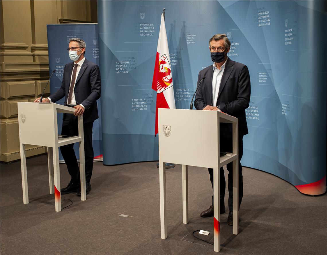 Im Rahmen einer Pressekonferenz berichteten Landeshauptmann Arno Kompatscher und Landesrat Thomas Widmann am heutigen Montagabend über die von der Landesregierung vereinbarte Vorgehensweise und die neuen Regeln, die am morgigen Dienstag in eine Verordnung gegossen werden und mit Mittwoch in Kraft treten sollen und vorerst bis zum 22. November gelten.