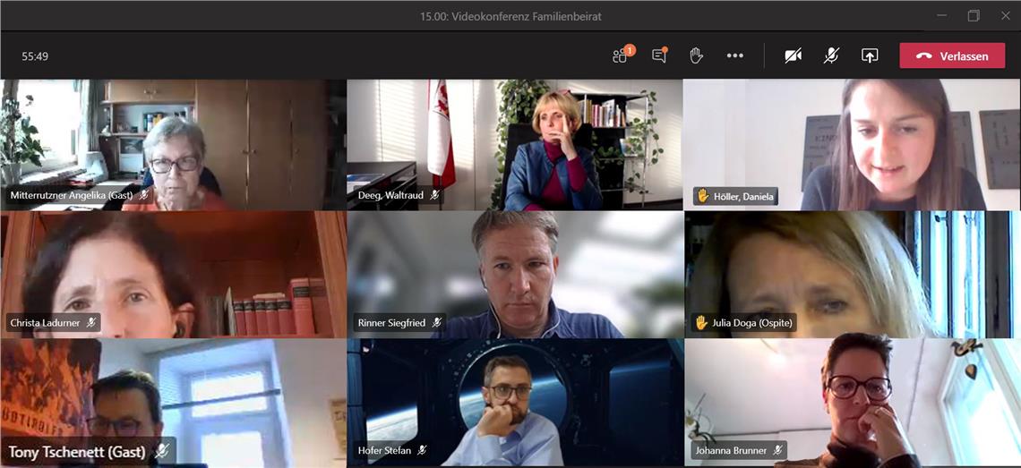 Man fordere daher den Beibehalt der Betreuungsleistungen für Kleinkinder sowie des Präsenzunterrichts in Kindergarten, Grund- und Mittelschule, auch für die Oberschule sei dies wünschenswert. Dies müsse in jedem Fall so lange aufrecht sein, so lange die Wirtschaftsbetriebe ihre Tätigkeit nicht komplett einstellen und somit Eltern zur Arbeit gehen müssen. Bei einem erneuten Lockdown bräuchte es zudem eine Absicherung finanzieller Natur sowie unterstützende Dienstleistungen für weiterhin berufstätige Eltern. Auch die sozialen Dienste vor allem für Kinder, Jugendliche und Erwachsene mit Behinderungen und in schwierigen familiären Situationen müssten dringend aufrecht bleiben. Familien brauchen Planungssicherheit, die vor allem auch aus dem Bildungs- und Betreuungsbereich gegeben werden muss. Beispiele aus dem nahen Ausland würden zeigen, dass trotz Lockdown am Präsenzunterricht in den Schulen festgehalten werden müsse. Dieses Anliegen wird der Familienbeirat als beratendes Gremium der Landesregierung auf Landes- und Staatsebene deponieren. "Die Erfahrungen aus der ersten Phase der Pandemie waren einschneidend und haben gezeigt, dass eine Schließung der Dienste nicht die Antwort sein kann. Wir bauen auf die Zusammenarbeit aller Beteiligten, um gute und umsetzbare Lösungen zu finden", sagte die Vorsitzende des Beirates, Familienlandesrätin Waltraud Deeg.