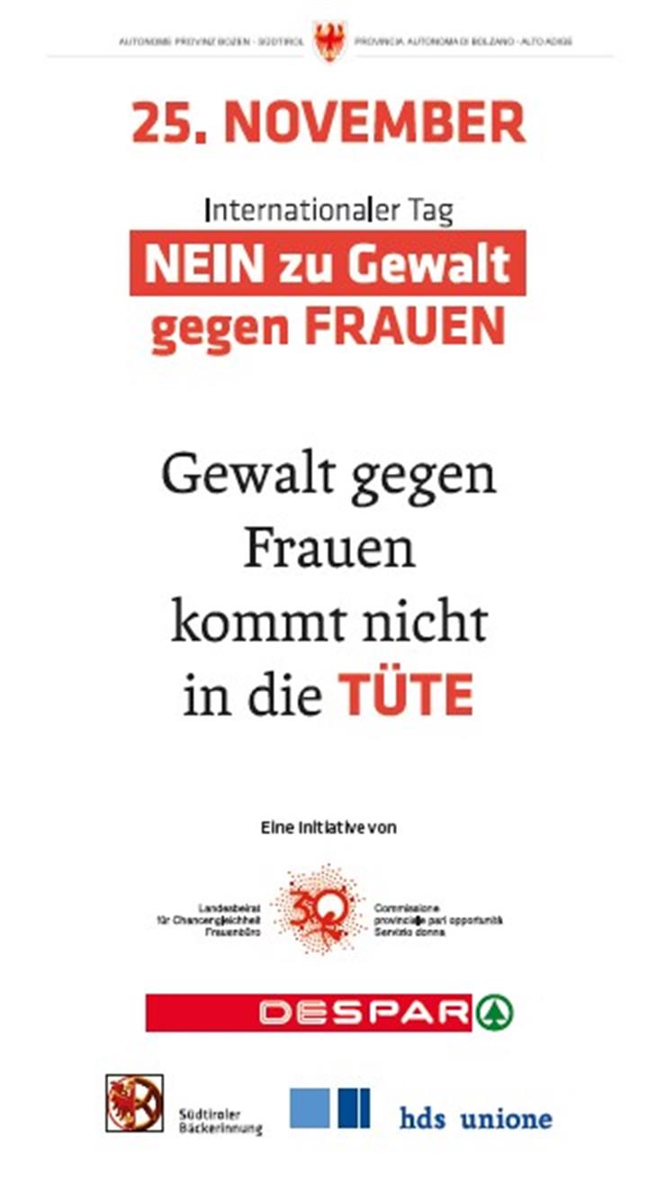 Die Aktion wird vom Handels- und Dienstleistungsverband Südtirol (hds), der Bäckerinnung und der Lebensmittelkette Despar landesweit unterstützt. "Der hds mit seinen eingeschriebenen Handelsbetrieben im Lebensmittelsektor und die Bäckereien gewährleisten mit all ihren Mitarbeitenden in Zeiten der Coronakrise täglich die Grundversorgung in unserem Land", sagt hds-Präsident Philipp Moser. Der Innungsmeister der Südtiroler Bäcker Johann Trenker ergänzt: "Wir sind in Kontakt mit den Menschen und unterstützen überzeugt die Botschaft Nein zu Gewalt an Frauen."