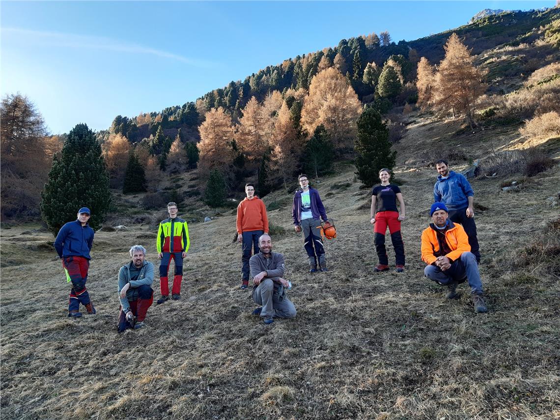 In Zusammenarbeit mit der Fachschule für Landwirtschaft Dietenheim und dem Forstinspektorat Bruneck hat man im Naturpark Rieserferner-Ahrn daher eine Fläche gefunden, wo zukünftig die Mahd wieder aufgenommen werden sollte. Aufgeteilt auf drei Praxisgruppen und begleitet von den Lehrern Martin Oberleiter und Hartmann Kolhaupt entnahmen dort die Schülerinnen und Schüler der 3. Klasse der Fachschule für Landwirtschaft in Dietenheim Jungbäume und Sträucher, um wieder Platz zu schaffen und den Wiesencharakter wiederherzustellen. Hauptaugenmerk wurde auf das Schaffen von Strukturen und unregelmäßigen Randlinien gelegt.