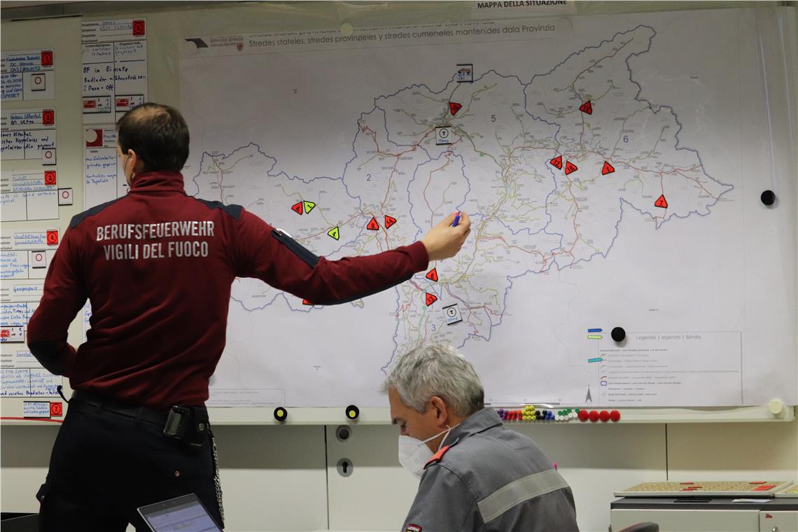 Die Lage ist konstant und komplex, wurde bei der Lagebesprechung heute (6. Dezember) um 18 Uhr im Landeslagezentrum in Bozen festgestellt.