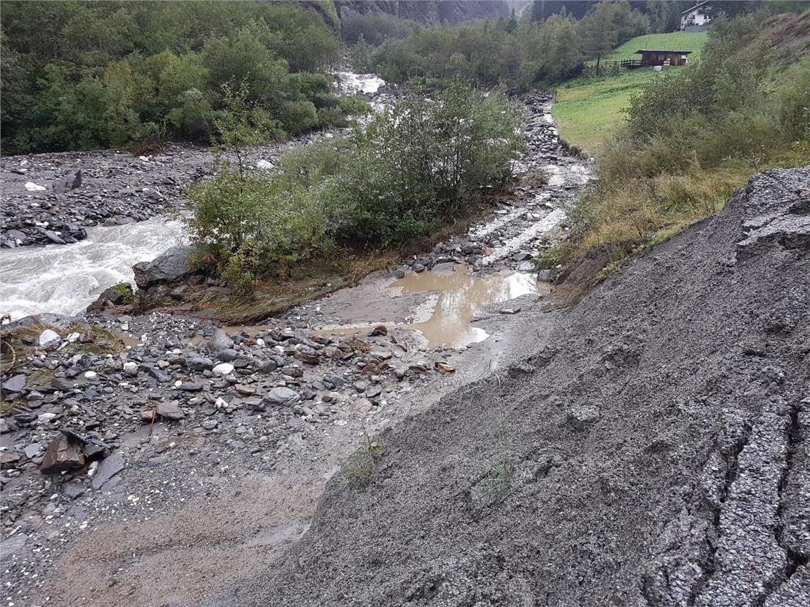 Infolge der Niederschläge vom 2. und 3. Oktober war im Passeiertal der Pegel der Passer und zahlreicher Seitenbäche stark angestiegen. Dies führte zu mehreren kleinen Ausuferungen, Seitenerosionen, Materialumlagerungen und Ablagerungen von Geschiebe und Schwemmholz an der Passer. Bei einigen Seitenbächen der Passer wie etwa dem Draunsbergberbach und dem Weißentalbach gingen kleine Murgänge ab, große Schäden konnten keine festgestellt werden, berichtet Lea Gasser vom Landesamt für Wildbach- und Lawinenverbauung West der Agentur für Bevölkerungsschutz, die gemeinsam mit Roland Gufler die Schäden dokumentiert hat.