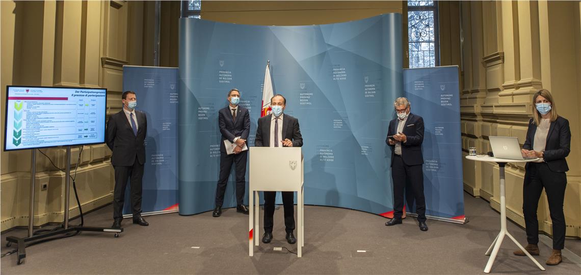 Gemeinsam mit Umwelt- und Energielandesrat Giuliano Vettorato, dem Präsidenten des Gemeindenverbandes, Andreas Schatzer, dem Präsidenten der Bezirksgemeinschaft Eisacktal, Walter Baumgartner, dem Brixner Bürgermeister Peter Brunner und dem Direktor der Landesagentur für Umwelt- und Klimaschutz, Flavio Ruffini, hat der Landeshauptmann heute (30. Dezember) bei einer Pressekonferenz in Bozen das umfangreiche Vorhaben und den vorangegangenen Beteiligungsprozess vorgestellt.