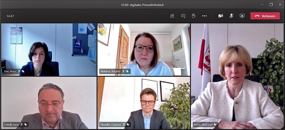 Waltraud Deeg, seit 2019 Landesrätin für Familie, Senioren, Soziales und Wohnbau, stellte heute (8. Jänner) im Rahmen eines digitalen Medienfrühstücks ihre Arbeitsschwerpunkte für das Jahr 2021 vor. Mit einem Gesetz zur Gewaltprävention, Maßnahmen zur besseren Vereinbarkeit und einem Gesetz zum Aktiven Altern will Deeg wichtige Weichen für eine gute gesellschaftliche Weiterentwicklung in Südtirol stellen. "Frauen, Familien und Senioren haben im Jahr 2020 mit besonderen Herausforderungen zu kämpfen gehabt. Ihnen gilt unser Augenmerk im Jahr 2021", hob Deeg hervor.