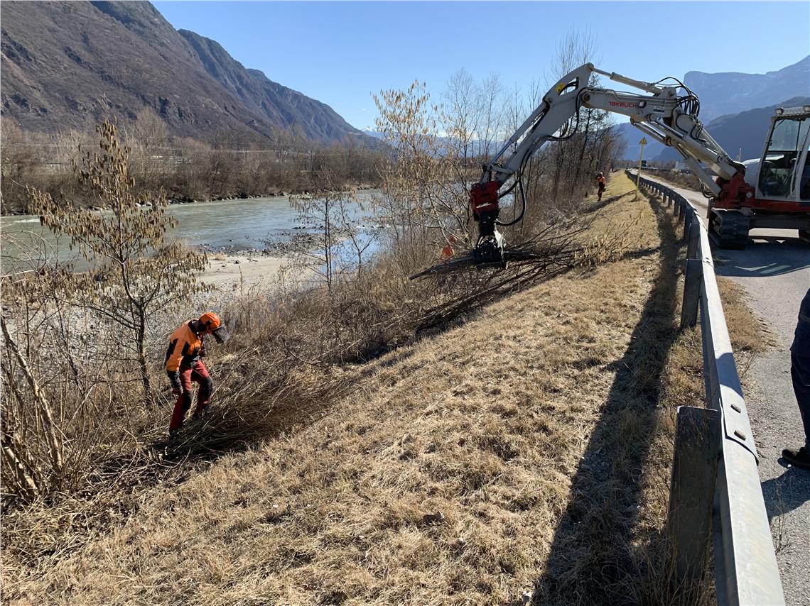 Mannschaften der Wildbachverbauung beginnen in diesen Tagen wieder mit den Uferpflegearbeiten an der Etsch und ihren Seitenbächen zwischen Meran und Salurn.