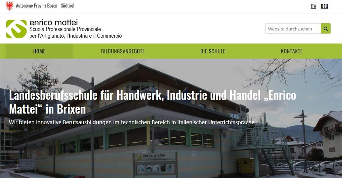 Nachdem im Herbst des Vorjahres die deutschsprachigen Landesberufsschulen sich mit einem neuen Webauftritt präsentieren, folgen nun auch die italienischsprachigen Berufsschulen. Unter dem einheitlichen Dach des Landes Südtirols und in einem zeitgemäßen Layout präsentieren sich seit Kurzem drei Schulen: Den Anfang machen die Landesberufsschule für Handwerk und Industrie "Luigi Einaudi" in Bozen, die Landesberufsschule für Soziale Berufe "Emmanuel Lévinas" in Bozen und die Landesberufsschule für Handwerk, Industrie und Handel "Enrico Mattei" in Brixen. Weitere vier Schulen erhalten in den nächsten Wochen ihren neuen Webauftritt. Für den italienischen Bildungslandesrat Giuliano Vettorato ist dies ein wichtiger Schritt, "um dem Personal, aber auch den Schülerinnen und Schülern und ihren Familien wertvolle Informationen über die Schule zu vermitteln, wobei auch der Schulalltag und die in der Schule realisierten Projekte sichtbar werden."