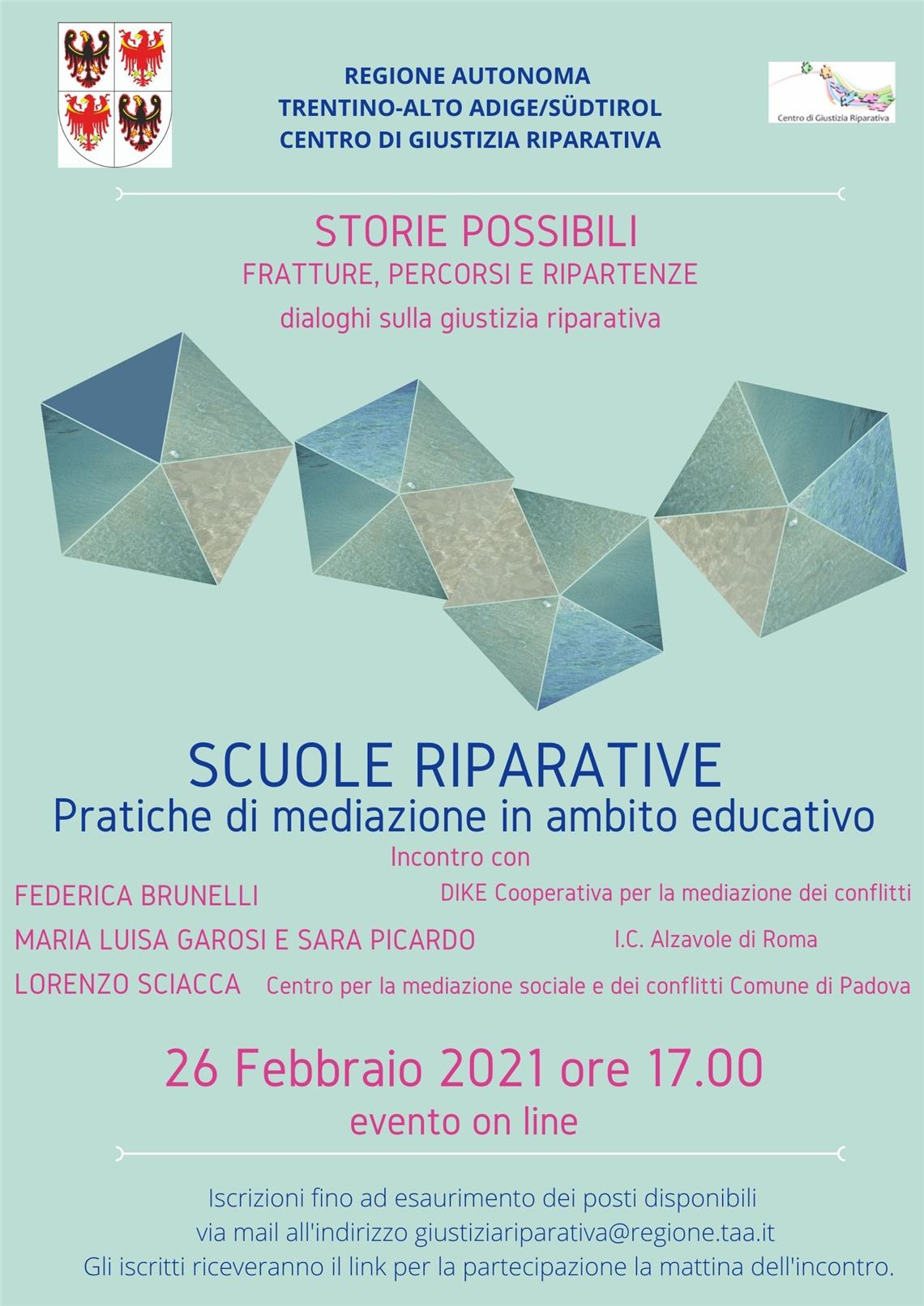 Die Veranstaltung findet in italienischer Sprache statt. Die Anmeldung für die Onlineveranstaltung erfolgt per Mail an giustiziariparativa@regione.taa.it.