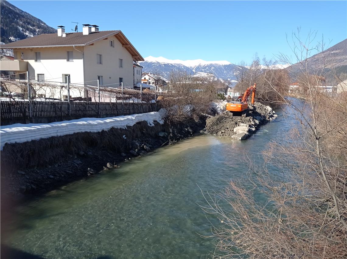 Im Auftrag des Landesamtes für Wildbach- und Lawinenverbauung West in der Agentur für Bevölkerungsschutz werden jetzt die Arbeiten zur Sicherung des Campingplatzes von Laas fortgesetzt.