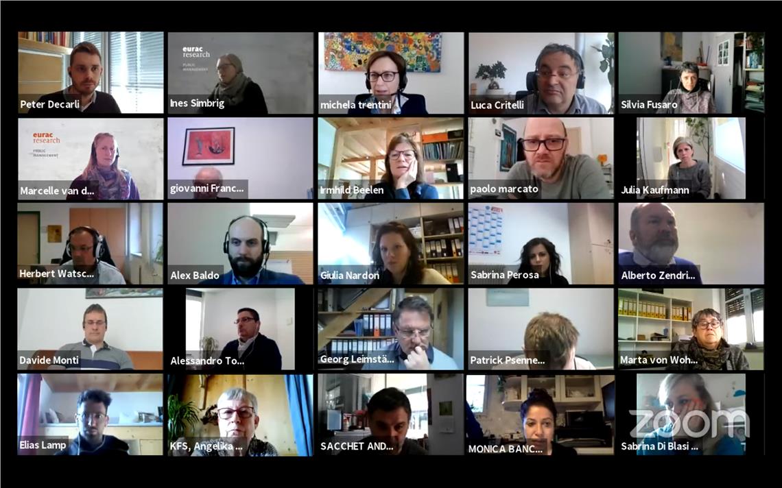 Nachdem der Workshop am heutigen Gedenktag für die Verstorbenen der Corona-Pandemie stattgefunden hat, wurde vor Beginn der inhaltlichen Auseinandersetzung von den 80 Teilnehmern eine Gedenkminute abgehalten. In fünf Arbeitsgruppen wurde und wird noch bis in die Nachmittagsstunden zu den Themen "Zukunft der privaten Organisationen", "Zukunft der Freiwilligenarbeit, Gemeinwesenarbeit und Selbsthilfegruppen", "Mix aus Sach- und Dienstleistungen", "Eigenverantwortung, Wahlfreiheit und Partizipation" sowie "Governance des Sozialwesens" diskutiert und gearbeitet. Das Video zum allgemeinen Teil des Workshops ist auf dem Youtube-Kanal von Eurac Research abrufbar.