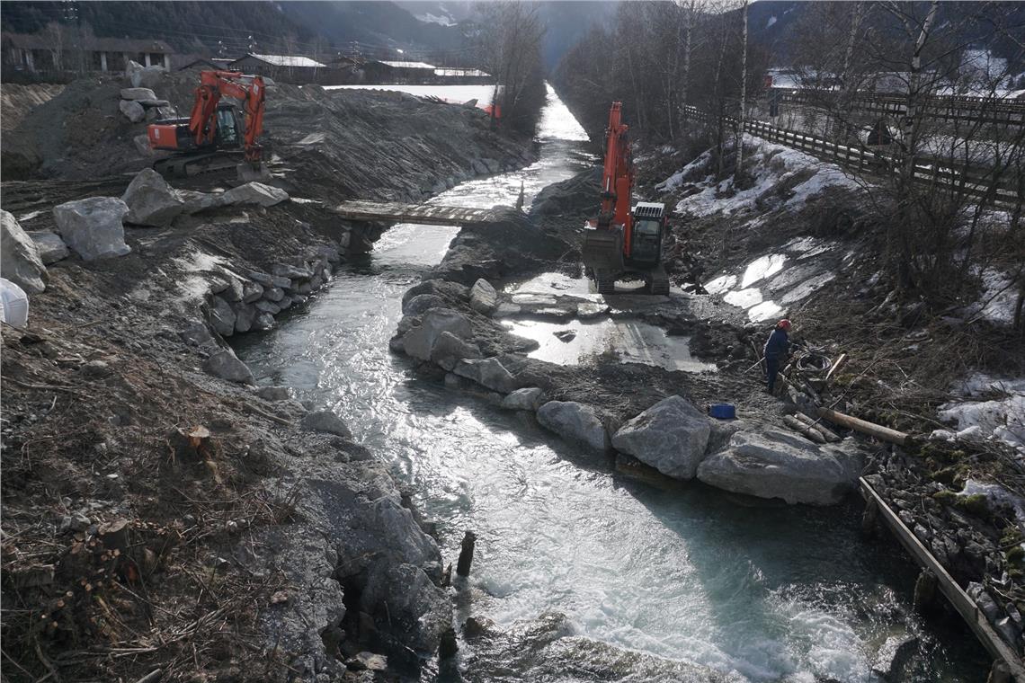Seit Baubeginn im vergangenen Spätherbst hat die Wildbachmannschaft mit Baustellenleiter Julius Staffler und Vorarbeiter Florian Hofer den Suldenbach umgeleitet und eine Bypass-Leitung verlegt. In den folgenden Wochen wird die bestehende Wildbachsperre abgebrochen und mit einer neuen ersetzt, die mit den notwendigen Messeinrichtungen ausgestattet wird. Gleichzeitig werden die Ufer erhöht, um einen besseren Hochwasserschutz zu gewährleisten, anschließend, voraussichtlich im Herbst, beginnen die Arbeiter mit der Errichtung der brückenartigen Struktur. Voraussichtlich werden die Arbeiten in rund einem Jahr abgeschlossen sein.
