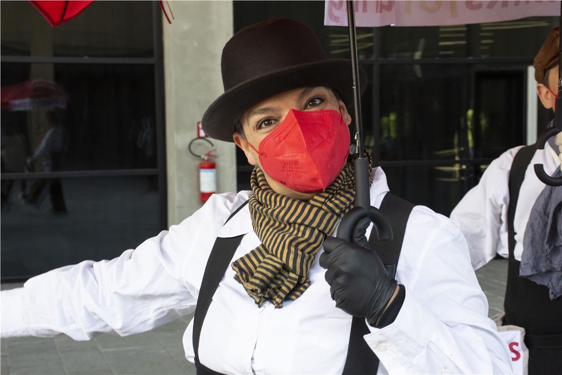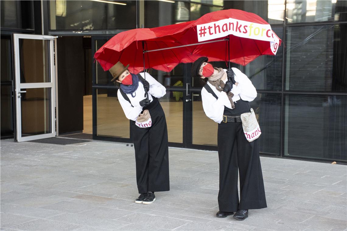 Die Coronavirus-Pandemie dauert nun schon über ein Jahr an. Die allermeisten Menschen halten die Regeln ein und sind sehr diszipliniert. Eine Gruppe von Künstlerinnen und Künstlern will sich dafür bedanken und tut dies ab heute (9. April) mit ihrer Aktion "Kunst sagt Danke" auf Südtirols Straßen. Zwei Duos von Künstlerinnen werden in verschiedenen Kurzaktionen zum Thema "Nähe und Distanz" an stark frequentierten Orten auftreten. Entwickelt und umgesetzt wurde die Initiative in Zusammenarbeit mit der Landesagentur für Presse und Kommunikation.