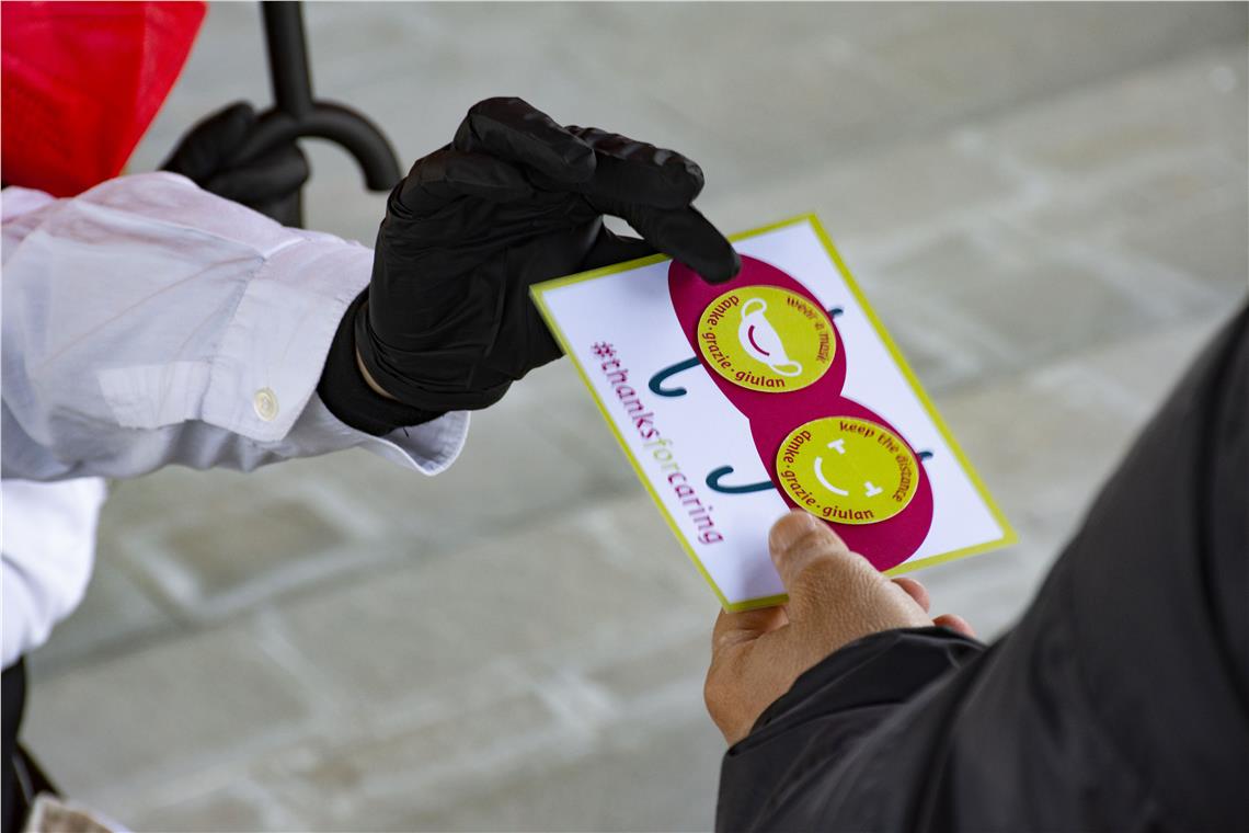 Bei den Aktionen verteilen die Künstlerinnen Postkarten mit Aufklebern. Die Botschaft darauf lautet: "Danke fürs Einhalten des Abstands", bzw. "Danke fürs Masken tragen" und sollen ein Zeichen des Respekts und der Wertschätzung sein, berichtet Projektleiter Günther Innerebner: "Jede und jeder, der sich ebenfalls bei seinen Mitmenschen bedanken will, dass sie in dieser schwierigen Situation durchhalten und auf ihr Gegenüber achten, kann dies mit dem Aufkleber zeigen."