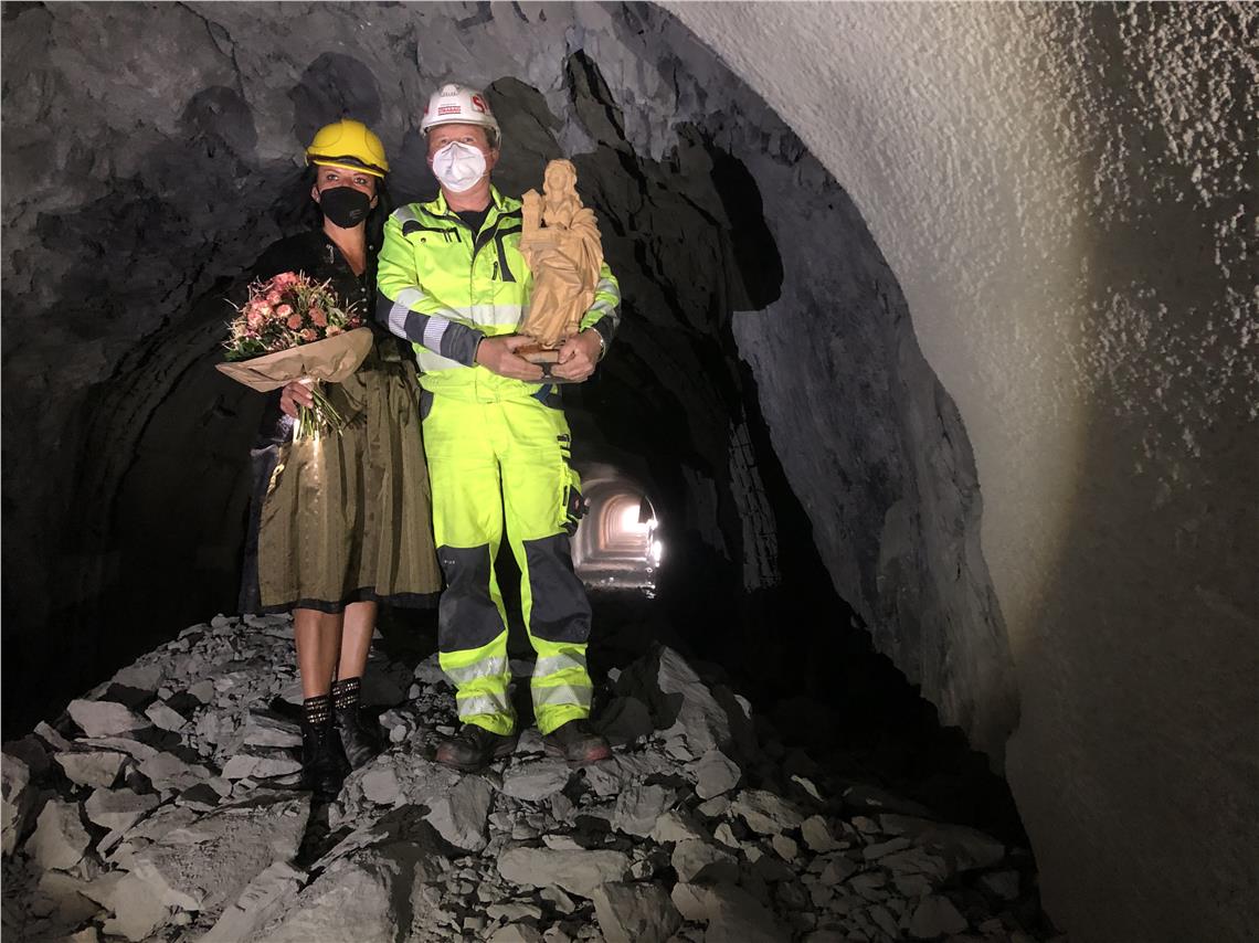 Somit seien die gesamten Vortriebsarbeiten heute erfolgreich abgeschlossen worden, heißt es von Seiten der Baufirmen. Gut 100.000 Kubikmeter Aushubmaterial wurde mit über 250.000 Mannstunden und mit Hilfe von 60.000 Kilogramm Sprengstoff zu Tage gefördert. Danach haben die Baufirmen den geschaffenen Hohlraum mit insgesamt 25.000 Kubikmeter Beton und 400.000 Kilogramm Baustahlmatten sowie in Summe gut 52.000 Laufmeter Sicherungsanker gestützt.