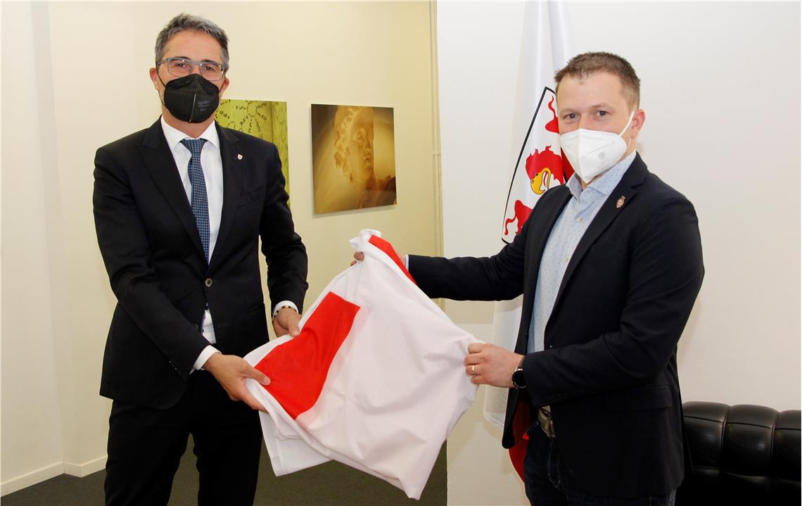 Anlässlich des Weltrotkreuztages am 8. Mai hat eine Delegation dem Landeshauptmann Arno Kompatscher die Internationale Rotkreuzflagge übergeben.