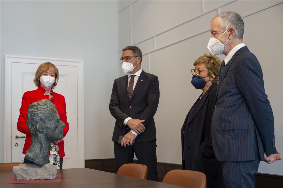 Anlässlich des 11. Todestages von Altlandeshauptmann Silvius Magnago hat Magnagos Familie dem Landeshauptmann Kompatscher eine Büste übergeben.
