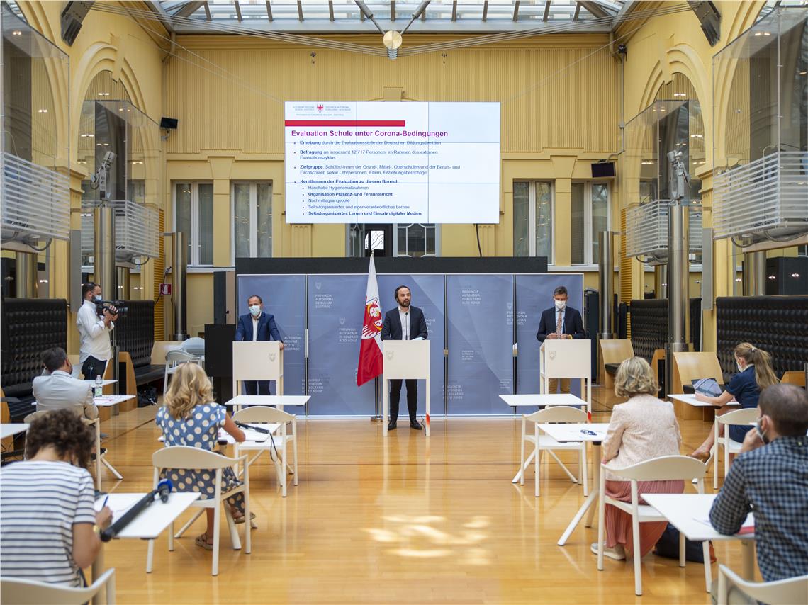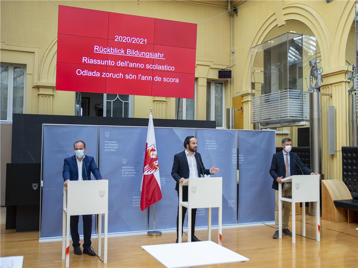 Rückblick auf das Schuljahr 2020/21 unter Corona-Bedingungen haben die Landesräte Achammer, Vettorato und Alfreider gehalten, aber auch Vorschau auf den Schulbeginn im Herbst.