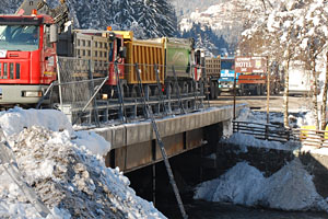 Da agost, canche n ova zarà ju l vedl puent dl stradon de Gherdëina fovel unì fat n puent de fier per lascé passe l muvimënt a na maniera provisoria y ova nce messé spusté la roles dla nfrastrutures primeres che passa tlo. De setëmber à n pona scumencià a fé l puent nuef. Mpede cin mënsc, an me adurvà trëi mënsc. Ncuei, juebia iel unì fat la proves ufizieles cun sies camions: l puent à tenì zënza poblemes l pëis de 33 tones. Per duman, vënderdi sëira puderà l muvimënt di auti passé sun l puent nuef. Nsci possel nce unì tëut demez l semafer.