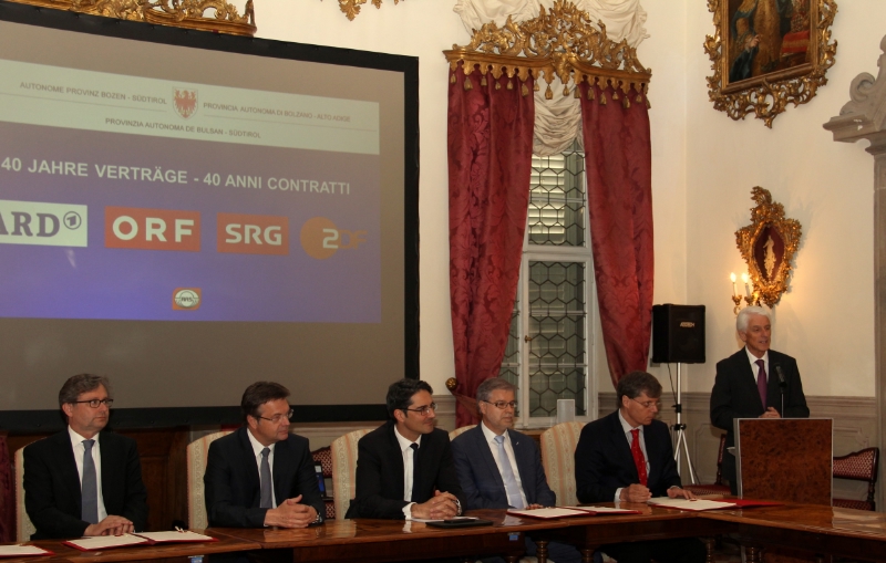 N gröm de rapresentanć dla politica y di massmedia, danter l'ater i presidënć dles juntes provinziales dl Südtirol y Tirol, Arno Kompatscher y Günther Platter, s'à incuntè incö tl palaz Mercantil a Balsan por recordè l'importanza dla difujiun di programs dl ARD, ZDF, SRG y ORF tl Südtirol. "Al dedaincö ne podunse gnanca se imaginé l'importanza che chisc contrać à albü y à ćiamò tres por nos", dij le presidënt dla Provinzia Arno Kompatscher.