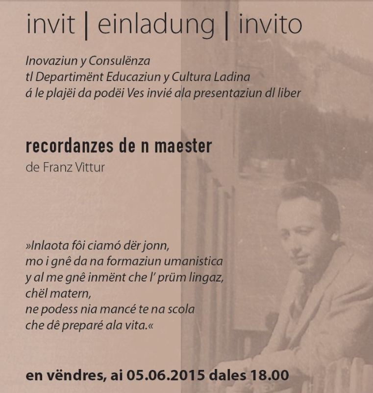 Recordanzes dër prezioses che descrii le svilup dla scora ladina y i recorc personai é gnüdes racoiüdes dal maester Franz Vittur, intendënt dla scora ladina dal 1975 cina al 1992, te na publicaziun nöia che gnará presentada ai 05 de jügn dales 18 tla biblioteca Sas dla Crusc a Badia.