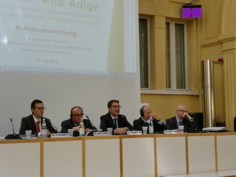 Incö (ai 27 de ma) él pié ia a Balsan le program dl Fonds europeich por le svilup regional (FESR) che prevëiga na soma d’investimënc de 136 miliuns de euro (63 inplü en confrunt al program da denant) por la chersciüda dl’economia y dl setur dl laur local tla perioda danter le 2014 cina l’ann 2020. Cater é i pilastri prinzipai dl program.