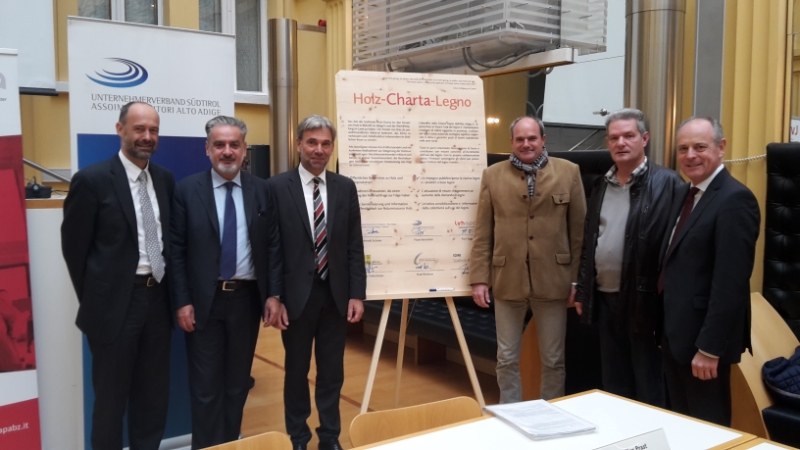 Tratan l’incuntada da incö él ince gnü sotescrit la „Charta dl Lëgn“ da pert dl assessur Schuler, dl presidënt dl TIS Nikolaus Tribus, dl presidënt dl Bauernbund Leo Tiefenthaler, da Paolo Bortolotti dla seziun lëgn tl’Assoziaziun di imprenditurs, da Kurt Egger dl grup de mestiers lëgn tl’Assoziaziun di artejans, da Rudi Rienzner dl’Uniun energia Südtirol y da Hansjörg Prast de IDM Südtirol.