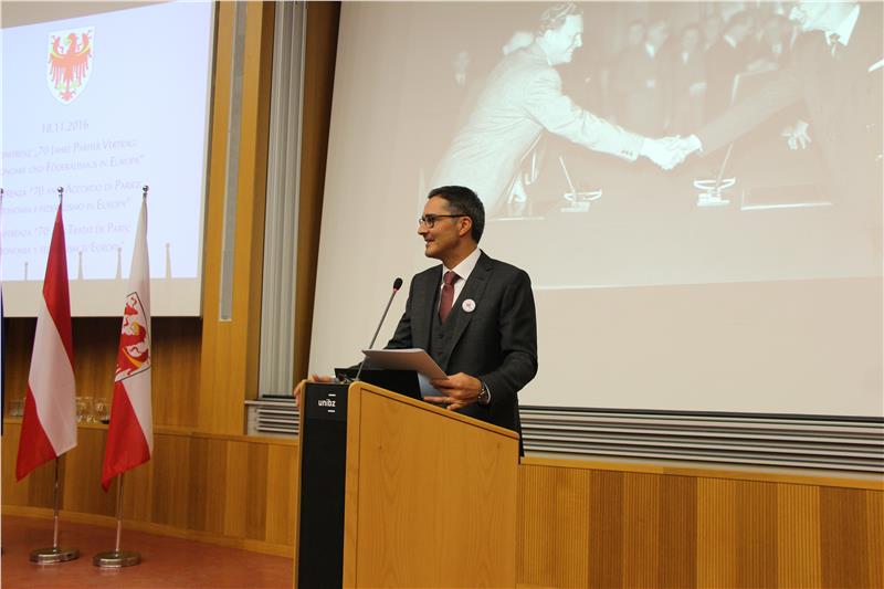 „Por Südtirol é l’Europa na vijiun, na prospetiva y na poscibilité“, á sotligné le presidënt dla Provinzia Arno Kompatscher incö, ai 18 de novëmber, tratan la daurida dl convëgn „70 agn Acordanza de Paris: Autonomia y federalism t’Europa“ tl’Université da Balsan. „Al é important che i sun cosciënc, sciöche i sun stá bugn da svilupé inant le Südtirol te na manira positiva, mo ince sciöche i se imaginun nosc percurs sciöche Südtirol y Euregio tl dagní“, á sotligné Kompatscher.