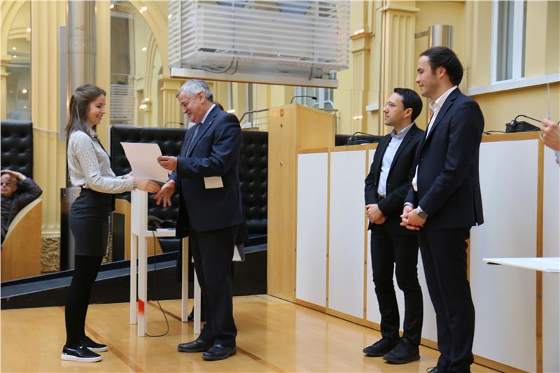 L’assessur por la scora todëscia Philipp Achammer á sotligné por l’ocajiun le bun resultat di 100 punc sön 100 che resta tres, deache al desmostra impëgn, determinaziun y ince conzentraziun da sostigní les proes. „Al é n’aodanza che i jogn sides bugn da apliché chëstes cualités ince al intern dla sozieté por dé n contribut de svilup“, insciö Achammer recordan che la sozieté südtiroleja á bojëgn dl otimism y dla chersciüda dla jonëza. Ala zerimonia en onur di studënc tl Palaz Widmann a Balsan ál ince tut pert l’intendënt dla scora ladina Roland Verra y dla intendënta por la scora taliana Nicoletta Minnei. L’evënt é gnü abelí dala musiga dl grup "Messing around" dla scora de musiga de Gries.
