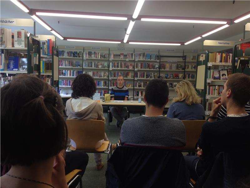 Le jonn autur da Naturns, Marcel Zischg é sté ai 18 de ma te biblioteca dla scora alta a La Ila. I scolars y les scolares dles cuintes á podü passé n domisdé n püch atramënter. L'autur á lit dant fora de so ultim liber "Der verlassene Rummelplatz: Erzählungen". Chësc é na racoiüda de stories che trata l'eté danter l'ester "mituns" y l'ester "gragn". La tematica vëgn tratada val’ iade cun parores y conzec scëmpli, val’ iade cun pinsiers y stories plü intortes. L'autur ti lascia al letur tröpa lerch por interpreté y porchël á ince i scolars podü dedô fá domandes. Insciö á Zischg splighé coche sües stories nasc, gonot se sentel sön n banch y osservëia ci che sozed incëria. Al ti ciara ales situaziuns da vigni de y se pënsa spo pian ia da ches situaziuns coche ares podess jí inant.