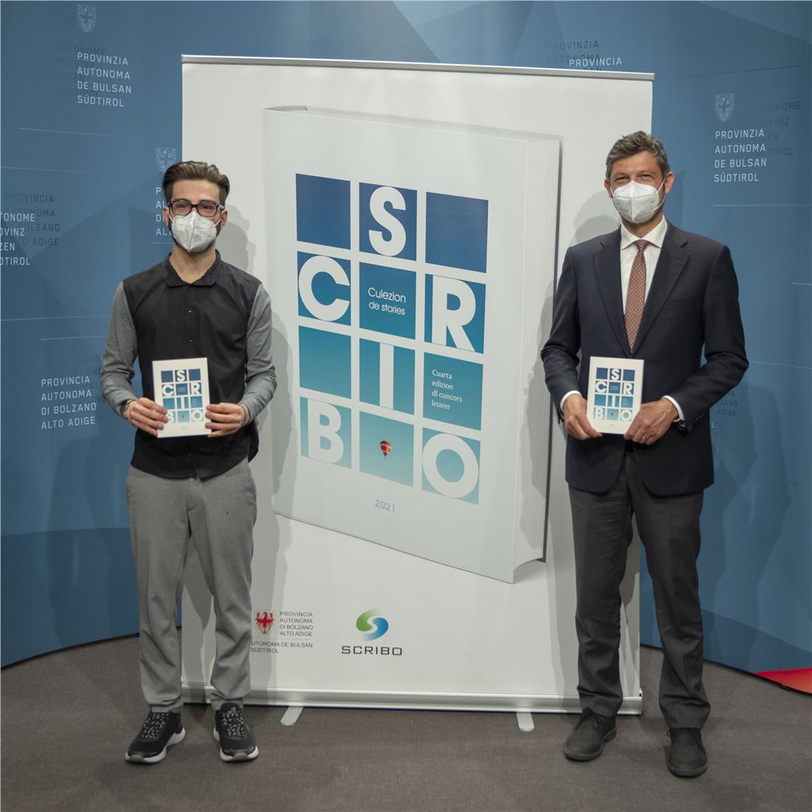 Nadia Rungger y Bruno Maruca á presenté incö adöm al assessur Alfreider y l'intendënta Ploner sües döes stories che fej pert dla coleziun dal titul “Scribo" y che é le resultat de n concurs leterar.