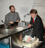 L assesëur Laimer cun l diretëur Angelucci mostra co che n adrova la njinies.